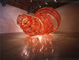 in the giant 4-armed balloon, the involutes form reminds you of an organic outer space and inner self at the same time -- but when you travel outside of it (once you are back in the space of the grand palais), I hope the viewer has another encounter with the piece and with the luminosity thrown down by the glass roof.' (Kapoor interview with design boom). Kapoor is a perfectionist and had to overcome lots of ‘technical’ problems.
